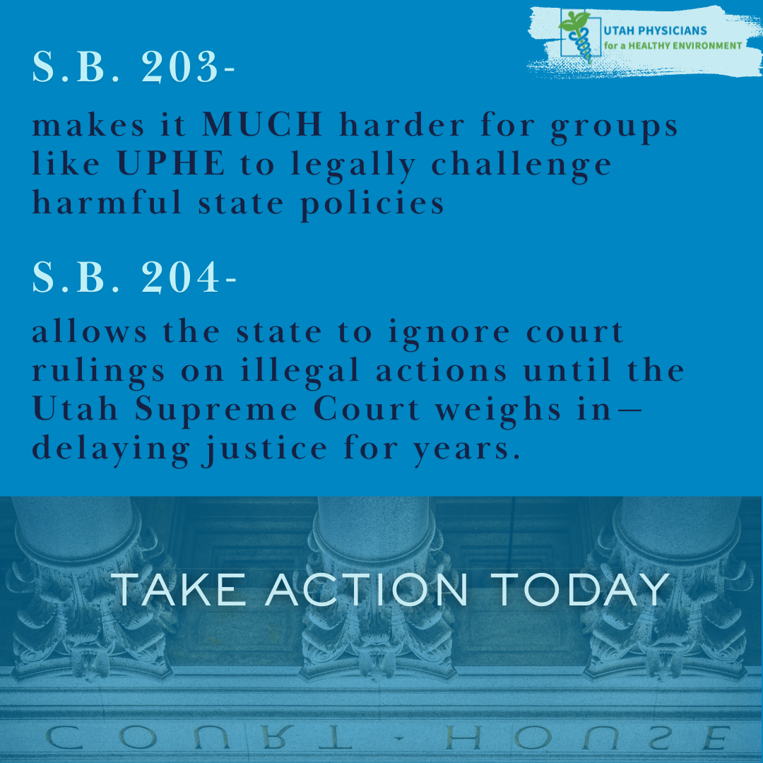 | 📢 SB277: Hiding Government Records from the Public What: This bill would make it harder for Utahns to access vital government records, including how tax dollars are spent and whether officials are acting ethically. It eliminates the independent committee that ensures transparency, leaving decisions to a single judge appointed by the governor. Worse, it removes a key rule allowing records to be released when it serves the public’s best interest—rules that have exposed corruption and police misconduct in the past. Why: This is a direct attack on transparency. Without public oversight, it becomes easier for officials to hide information and act without accountability. Who: Call your state senator TODAY and urge them to vote NO on SB277! The bill already passed a Senate Committee, will be voted on by the full Senate soon, then go to a House Committee and full House vote. Please call your state Senators first This is a direct attack on transparency. Call your state senator TODAY and urge them to vote NO on SB277! ![]() 📢 HB355: Unchecked Expansion of Gravel Pits & Industrial Sites What: This bill allows gravel pits and similar industrial operations to expand onto adjacent land with little oversight. That means more dust, pollution, and environmental destruction in communities already struggling with poor air quality. Why: More industrial expansion without regulation means more harm to Utah’s air quality and public health, increasing the burden on communities already affected by pollution. Who: The bill passed the House Committee, but legislators have admitted they are hearing the public’s outcry! We need even more voices. Contact your legislators today! We’ve made it easy with this form—please personalize your message. Calling at this stage of the game is most effective though! UPDATE! (March 3rd 2025) – HB 355 passed the House. It’s been assigned to the Senate Revenue and Taxation Committee. FIND THEIR CONTACT INFORMATION AND REACH OUT HERE. ![]() 📢 SB203 & SB204: Silencing Legal Challenges to Protect Public Health For years, UPHE has used litigation to stop illegal pollution and hold the state accountable. But these bills would make that nearly impossible What: These bills would make it significantly harder to challenge illegal pollution and hold the state accountable: SB203 would severely limit our ability to represent Utahns harmed by bad policies, making it harder to challenge destructive projects like the inland port and Great Salt Lake mismanagement. SB204 would allow the state to continue breaking environmental laws until the Utah Supreme Court intervenes—meaning illegal pollution could persist for years, harming public health. Why: These bills remove critical tools used to protect Utahns from environmental harm, allowing polluters and harmful policies to go unchecked for years. Who: Both bills have already passed the Senate so please launch a full court press to your House Representatives. This is a direct attack on Utahns’ right to clean air, water, and a livable future. Tell your legislators to vote NO on SB203 & SB204! ![]() 📢 SB239: Reducing Transparency for the Utah Inland Port Authority What: This bill would allow the Utah Inland Port Authority (UIPA) to keep business proposals for UIPA-sponsored development hidden from public view until UIPA itself decides to approve them. It also allows UIPA to spend property tax differential from a project area anywhere, as long as they create some kind of connection between the two. Why: Lack of transparency at UIPA is already a serious issue, with much of what the public knows coming through GRAMA requests. If this provision were in place, projects like the Zenith Bolinder development—set to devastate the Tooele Valley’s water supply—would remain secret until it was too late for public input. Additionally, allowing tax funds to be used outside project areas could lead to taxpayer money subsidizing harmful and speculative projects with no oversight or accountability. Who: Call your representatives and demand they vote NO on SB239! This bill will next be heard by the Utah Senate. Ask them: How does it serve the public interest to keep these proposals secret when they could have huge impacts on local communities? ![]() Photo courtesy of E P Kosmicki. 📢 SB311: A Threat to Utah’s Water & Air What: HB 311 expands government authority to negotiate secret water diversion projects without public oversight. It paves the way for the Bear River Development, a $3+ billion project to divert the Great Salt Lake’s largest water source—deepening the water crisis and worsening Utah’s air quality. Why: Draining the Great Salt Lake = More Toxic Dust & Worse Air. Climate change is already shrinking our rivers—we can’t afford more diversions. Who: Your Utah Senator! The bill passed the Senate Natural Resources Committee Thursday, Feb 27. Your state senator is the next step in the process. Together, We Can Make a Difference! Your voice is powerful. We have seen lawmakers acknowledge public pressure, and now is the time to amplify it. Call and email your representatives today! Every message matters. |